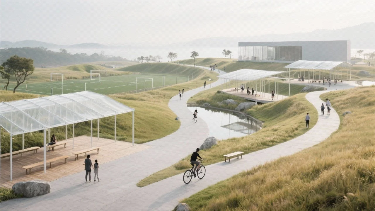 We design quiet frameworks for public life: parks, plazas, waterfronts, and small cultural buildings where people can walk, sit, meet, and return.
